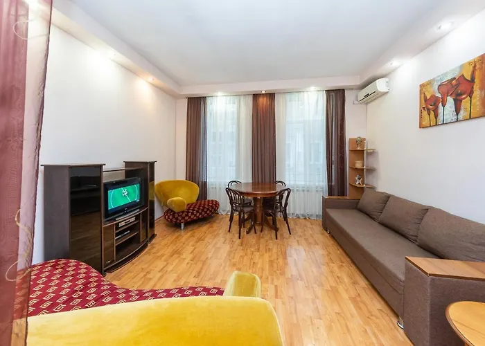 The spacious 77 m² Apartamenty Sofia lies around a 10-minute stroll from Khreshchatyy Park and within 400 metres of Khreshchatyk tube station. Guests can make use of Wi-Fi for both business and leisure purposes.